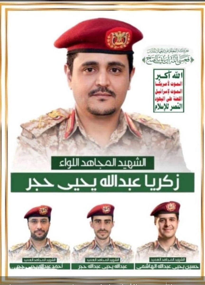 ومعه أيضا شقيقه أحمد عبدالله حجر (أبو هاشم)، وهو يعمل في مكتب القيادي اللواء ركن عبدالملك الدرة المكنى جهاديا (السيد هاشم) وهو أحد مسئولي سلاح الطيران المسير. وفقا لمصادر ديفانس لاين.
