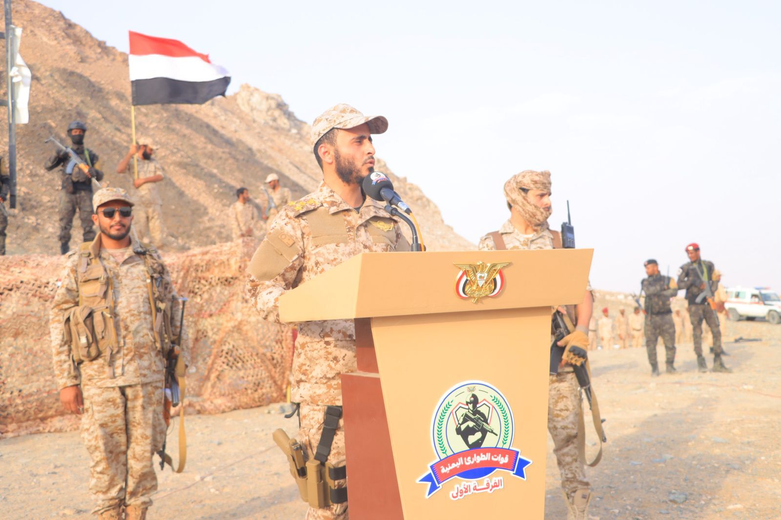 فعالية التخرج حضرها ضباط من القوات المشتركة (السعودية)، وتحدّث المعبري أن القوات ستكون رافداً أساسياً لحفظ الأمن والاستقرار، ومساندة القوات المسلحة في معركتها ضد المشروع الإيراني وأدواته الحوثية.. وقال إن "راية الجمهورية ستظل خفاقة حتى استعادة الدولة اليمنية".