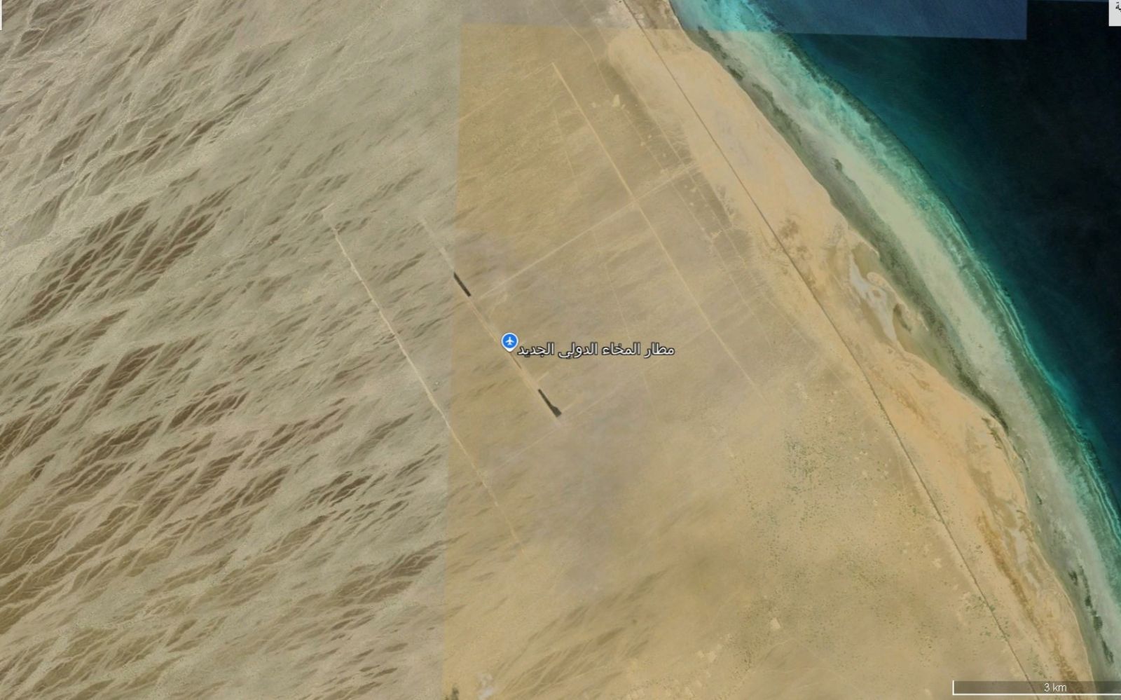 وقد تم إستحداث مدرج مطار جديد يجري تطويره، يرجح أنه مطار عسكري، في منطقة بني الحكم، وتم تعريف المنشأة على جوجل بـ"مطار المخاء الدولي الجديد".