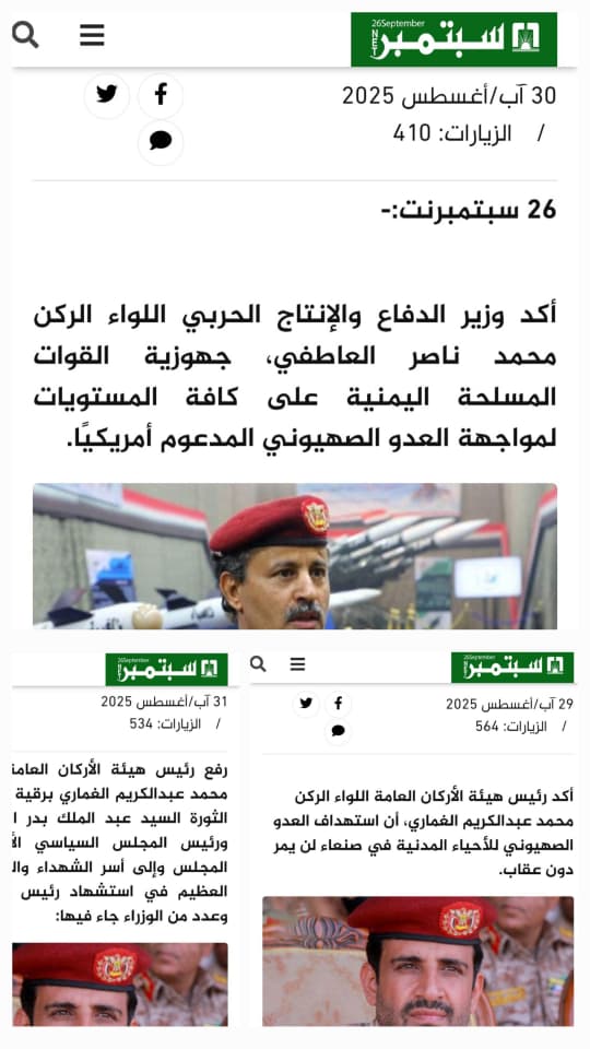 وفيما لم تفصح الحوثية عن مصير وزير دفاعها، كانت مصادر "ديفانس لاين" أفادت بإصابة الوزير العاطفي في الهجمات.